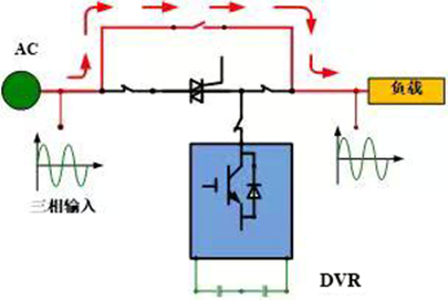 当电网出现扰动瞬间,反并联晶闸管快速关断,负载与电网隔离,由逆变器向负载供电